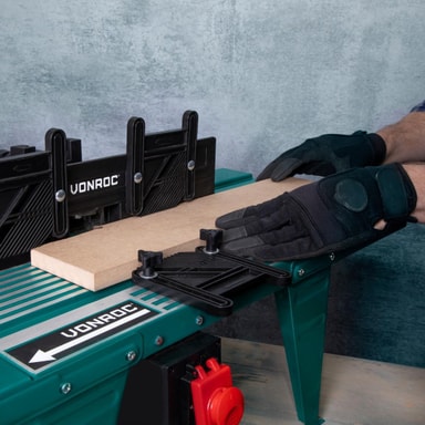 Med en generøs bordplade på 870x335 mm – inklusive bordudvidelser – får du plads nok til både små og store emner. Det gør det ideelt til formfresning, false, noter, samlinger, kantprofilering, nothakning og skrå snit i præcis den vinkel, du ønsker.