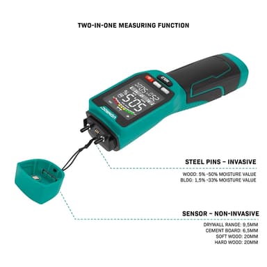 • 2-i-1: Stift og stiftfri fugtmåling i ét værktøj