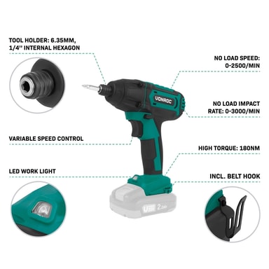 Denne slagnøgle leveres uden akku og oplader. Bestilling af udskiftelige 2.0Ah eller 4.0Ah akku og hurtigoplader er valgfri. Hvis du vil kombinere slagnøglen med et andet produkt fra VONROC Power 20V Platform, er det eneste, du behøver, en akku og en hurtigoplader! Vælg blot det nødvendige til en konkurrencedygtig pris!