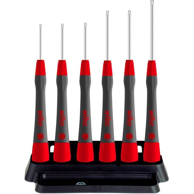 Forenkler dit arbejde: Med praktisk holder af kunststof til henstilling eller ophængning. Letter håndteringen: Ekstra lang drejehætte muliggør optimal føring. Wiha MagicSpring® holdefunktion fastholder alle Torx®-skruer uden magnet. Øger din effektivitet: Skruetrækker-grebskoncept for en optimal balance mellem præcision og kontrol. Øger din præcision: Afmålt arbejde og kontrolleret kraftoverførsel takket være et slankt greb med softgrip-zone. Udfordringen ved finmekaniske forskruninger er at arbejde præcist og følelsesladet uden at beskadige emnet. Finskruetrækkeren PicoFinish® fra Wiha er ideal - takket være det lange, slanke greb og hurtigdreje-zonen - til fint og sarte arbejde inden for finmekanik samt til hobby- og modelbyggebranchen. Det ergonomiske håndtag med blød zone gør det komfortabelt at arbejde. Afmålt og hurtig drejning understøttes med den letbevægelige drejekappe. Desuden gør de påtrykte skruetrækkersymboler på drejehætte det lettere at vælge den korrekte skruetrækkerprofil. Sættet indeholder 6 Fin PicoFinish® og en holder. Sidstnævnte kan opbevare finskruetrækkeren på arbejdspladsen på ordentlig vis. Ideel ideal til fint og sart skruearbejde inden for finmekanik, modelbyggeri og hobby. OBS! Denne produktbeskrivelse er endnu ikke blevet oversat til dansk af vores oversættere. Derfor er teksten maskineoversat fra den tyske originaltekst.