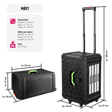 Med hjul og et praktisk teleskop-håndtag er denne værktøjskasse utroligt mobil og let at tage med dig rundt. Uanset om du arbejder hjemme, i garagen eller på en byggeplads, gør værktøjskassen det nemt at have alt dit værktøj samlet ét sted.