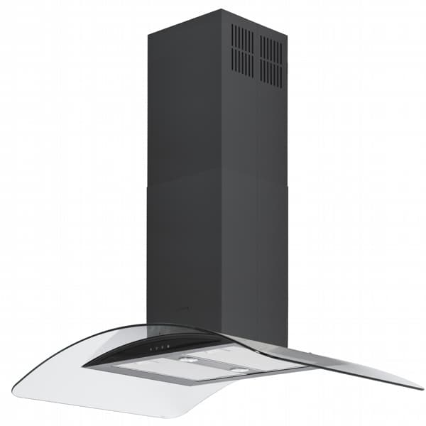 Frit hængende emhætte med buet glas og energiklasse A, fingertouch betjening, kapacitet 264-621m3/t, lydniveau 51-70dB