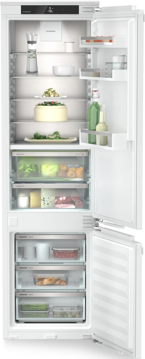 Liebherr Plus ICBNc 5623-20 001 køleskab/fryser integreres med direkte møbelmontering, Wi-Fi og NoFrost-teknologi, og tilbyder et 202L køleskab og 70L fryser i et elegant hvidt design med vendbart højre dørhængsel.Læs mere om produktet