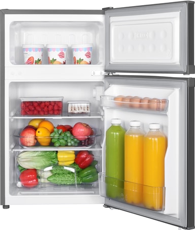 Enhedens køleskab tilbyder dig en rummelig kapacitet på 60 liter, hvor du kan opbevare dine madvarer på 2 glashylder indeni.