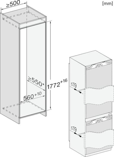 Miele ComfortClean-dørhylder er fremstillet af plast af høj kvalitet og er særligt ridsefaste, kemikalieresistente, temperaturstabile og transparente. ComfortClean-dørhylder tåler hygiejnisk rengøring i opvaskemaskinen (op til 55 °C). Dermed er manuel aftørring af dørhylderne ikke længere nødvendigt.ComfortSize
