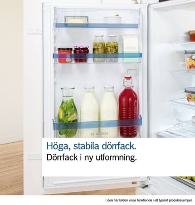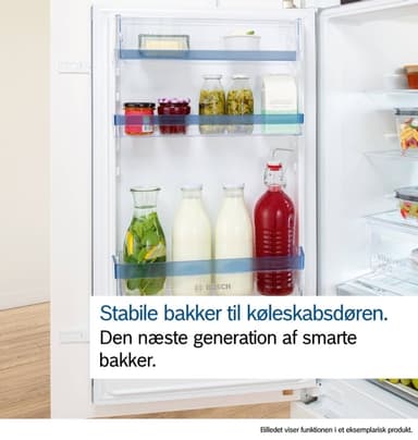 • Stabile bakker til køleskabsdøren: ekstrahøje og fleksible, så du får både mere plads og øget stabilitet.
