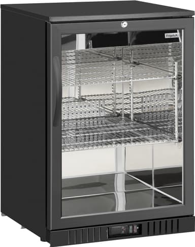 Dette FrigeluX barkøleskab AB110MIR tilbyder en rummelig kapacitet på 86 l med 2 hylder, justerbar temperatur, praktisk LED-belysning og alsidige placeringsmuligheder, perfekt til barer, restauranter, fitnesscentre og andre virksomheder.Læs mere om produktet