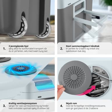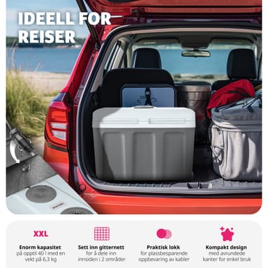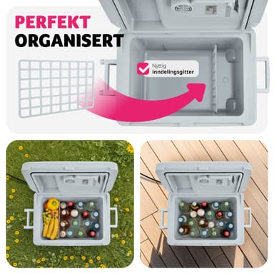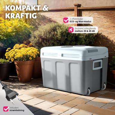 Den alsidige køleboks imponerer ikke kun med en imponerende køleevne, men er også optimalt egnet til at holde dine yndlingsretter varme – ideel til enhver årstid og enhver anledning. Med den høje kapacitet har du desuden rigelig plads til at opbevare snacks, drikkevarer, kosmetik eller medicin.
