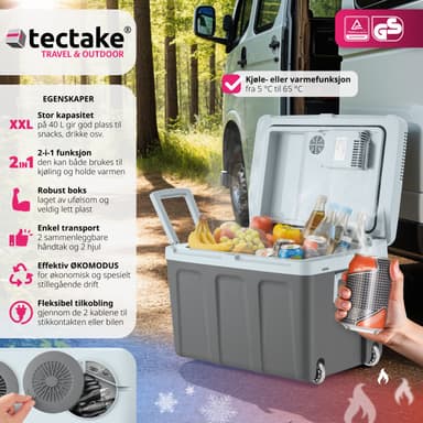 Uanset om det er på stranden eller på campingpladsen, så er den elektriske køle- og varmeboks fra tectake din pålidelige følgesvend.