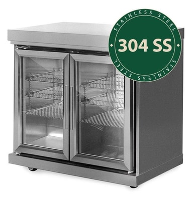 Fritstående modul køleskab med dobbelte låger i rustfri finish. Køleskabet har kompressorkøling og kan holde ned til 3°C. Passer perfekt ind i udekøkkenet!