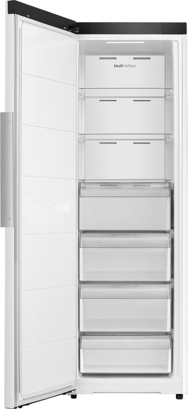 Med en rummelig kapacitet på 312L tilbyder denne fryser rigelig plads til alle dine frosne varer. Den inkluderer fire skuffer og tre hylder, hvilket giver fleksible opbevaringsmuligheder til at organisere din mad effektivt. Deep Freeze-funktionen giver mulighed for hurtig frysning af nye varer og bevarer deres friskhed og næringsværdi.
