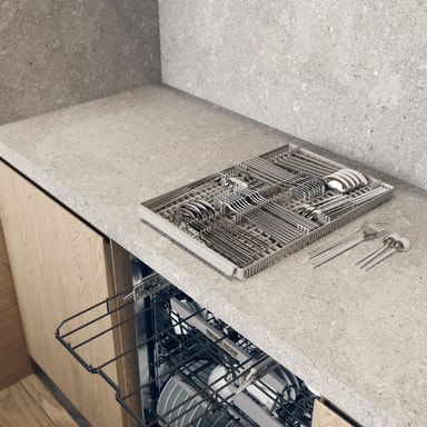 Nattetilstanden reducerer støjniveauet med 2 dB takket være et lavere tryk i spulearmen. Denne tilstand er perfekt til brug om natten eller til boliger med åbne planløsninger, hvor køkken og stue smelter sammen.