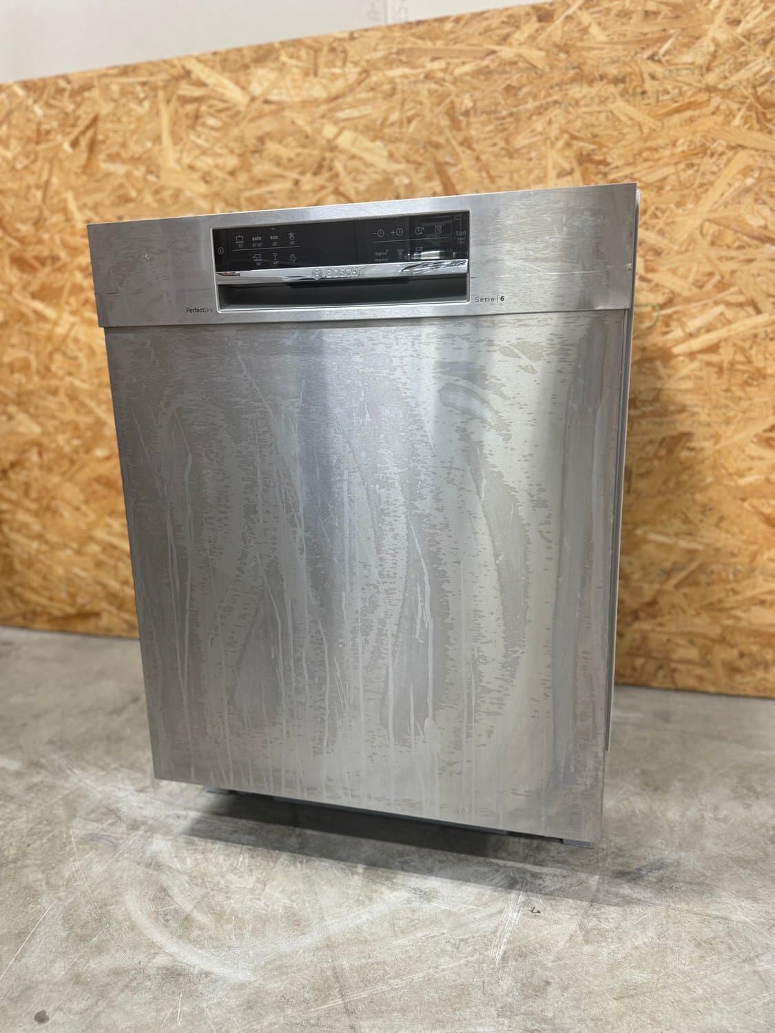 Brugt med 24 mdr. garanti – brugt Bosch Serie 6 opvaskemaskine med plads til 14 kuverter. Flot opvaskemaskine i rustfri stål med enkelte kosmetiske brugsspor. Bemærk venligst: Mærker på front lågen - ses på billede.Læs mere om produktet