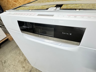 Brugt opvaskemaskine med 24 mdr. garanti: brugt Bosch serie 8 opvaskemaskine med plads til 14 kuverter Bemærk: Med små kosmetiske skader på front lågen. En lille bule og lidt slid på højre side - se billeder!! Du er altid velkommen til at besigtige produkterne på vores lager i Glostrup inden køb