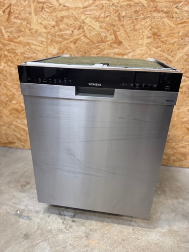 Brugt opvaskemaskine med 24 mdr. garanti: brugt Siemens iQ500 opvaskemaskine i rustfri stål med plads til 14 standard kuverter. Flot opvaskemaskine med nogle få kosmetiske brugsspor udenpå. Bemærk venligst: Har nogle mærker på fronten.
