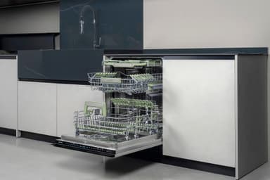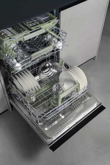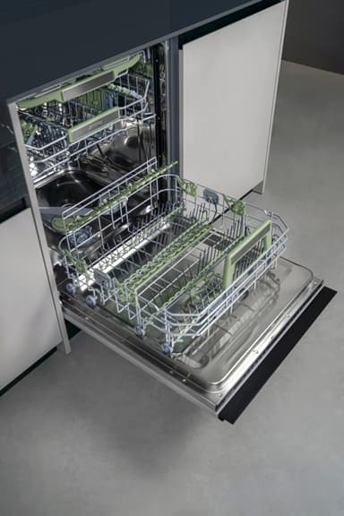 • Den fleksible tredje kurv giver ekstra plads og tilpasser sig belastningen for at rumme forskellige typer tallerkener, hvilket sikrer optimal organisering og effektiv udnyttelse af indvendig kapacitet