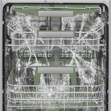 • Fuld og dyb vaskedækning takket være den avancerede bevægelse af sprøjtearmen, en innovation patenteret af Smeg