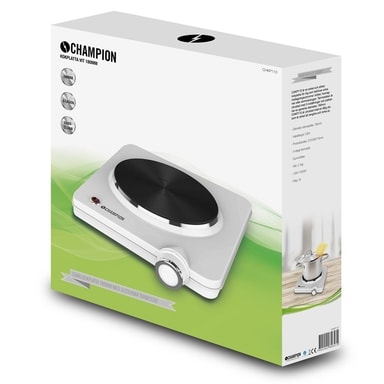 CHKP110 är en enkel och stilren kokplatta för dig som behöver extra matlagningsutrymme i köket, husvagnen eller sommarstugan. Termostaten är utrustad med 5 inställningar och plattan har en generös diameter, 180mm. Champion CHKP110 är utrustad med en tålig yta som är enkel att rengöra och torka av.
