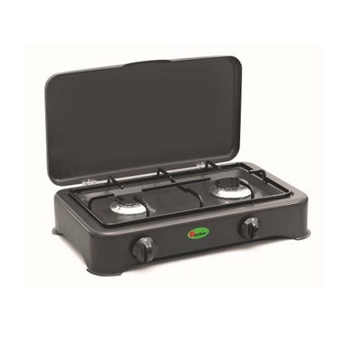 Parker er et frittstående emaljert kokeapparat med 2 bluss for plassering på benk. Lokket beskytter veggen mot søl.