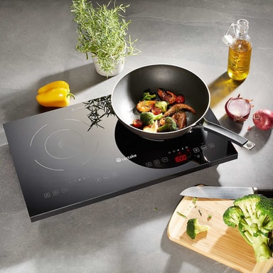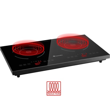 Med den alsidige og praktiske dobbelte induktionsplade fra tectake, kan du nemt tilberede selv krævende retter mad overalt. Kogepladens lækre krystaloverflade er velegnet til mange typer af magnetisk kogegrej, lige fra støbejernspander til gryder i rustfrit stål. Begge felters store effekt- og temperaturområde på induktionskogepladen er lette at betjene, fuldstændigt uafhængigt af hinanden, via den intuitive touchscreen. Induktionspladens godt gennemtænkte konstruktion ses tydeligt ved det robuste plastikkabinet med skridsikre fødder, i den justerbare børnesikring og sidst, men ikke mindst, i det stilfulde design af den dobbelte kogeplade, som er let at holde.