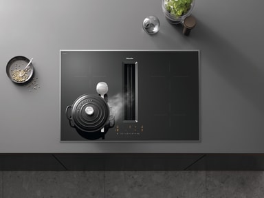 Med Con@ctivity kan du fokusere fuldt ud på madlavningsglæden, fordi emhætten og kogepladen kommunikerer med hinanden. Kogepladen sender oplysninger om sine indstillinger til det elektroniske modul i emhætten, som automatisk justerer udsugningsniveauerne. Du behøver ikke længere at huske at slukke for emhætten efter madlavningen. Alle Mieles 2-i-1-kogeplader har Con@ctivity som standard.