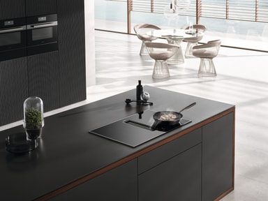 Minimalistisk design: Miele-emfanget er både diskret og elegant - og opfylder de højeste krav til både æstetik og funktion. Da emfanget er indbygget i plan med bordpladen, kan gryder og pander flyttes rundt på kogepladen, helt uden barrierer.
