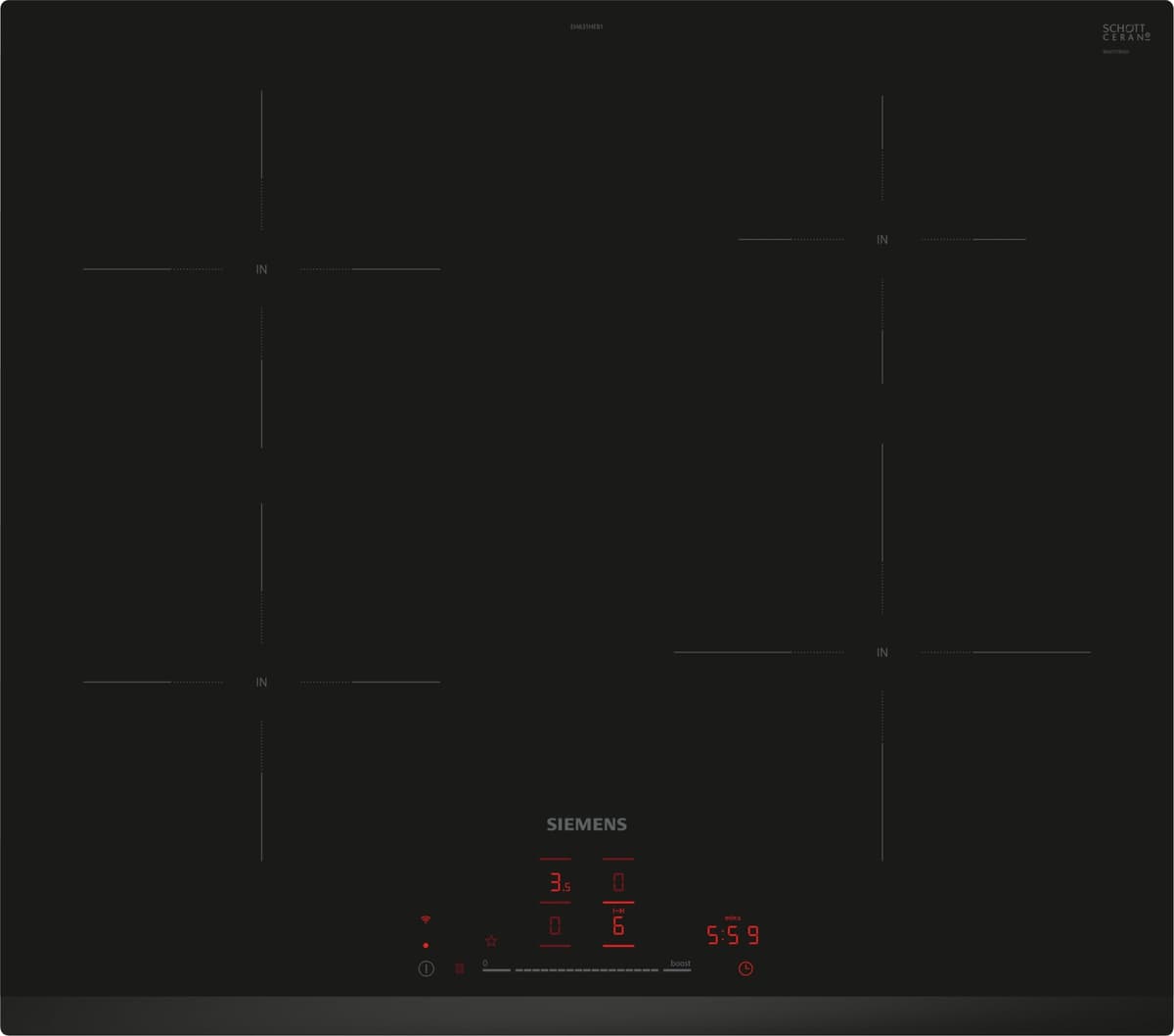Siemens iQ100 EH631HEB1E Kogeplade har et slankt 60 cm sort design med 4 kogezoner, intuitiv MultiTouch+ kontrol og smarte Home Connect-funktioner.Læs mere om produktet