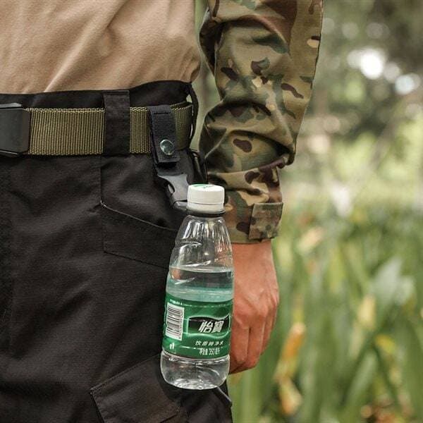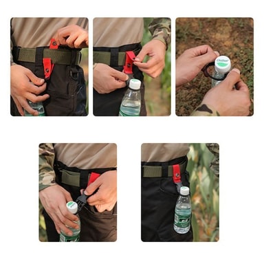 Smart og praktisk flaskeholder, velegnet til flere forskellige anvendelsesområder. Hæft den i dine bukser, på din taske eller ethvert andet sted, hvor der for eksempel er brug for en vandflaske!