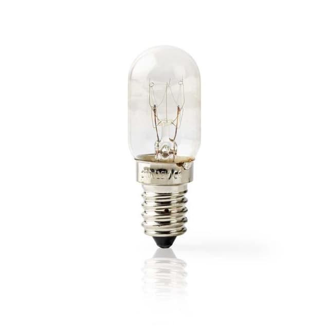 15 W-reservepære til køleskab med E14-fatning. Gennemsnitlig brændetid: 1.000 timer.