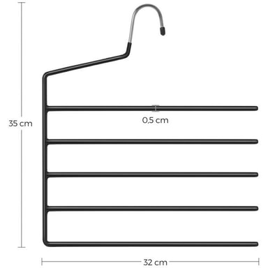 Få styr på buksebjerget i dit klædeskab med denne praktiske 4-pak buksebøjler. Hver bøjle er udstyret med fem parallelle stænger, hvilket betyder, at du kan hænge op til 20 stykker tøj i alt - perfekt til jeans, habitbukser, tørklæder eller håndklæder.