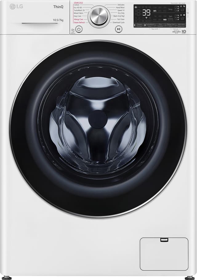 Vask og tør et par ting hurtigt eller hele ugens bunke i én vask. Takket være 10,5 kg vaskekapacitet og 7 kg tørrekapacitet klarer den let ophobningen af vasketøj efter ferier eller forlængede besøg.