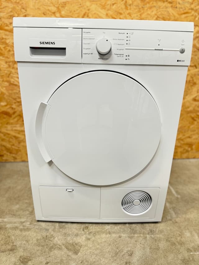 Brugt tørretumbler med 24 mdr. garanti: brugt Siemens iQ300 kondens tørretumbler med 7 kg. kapacitet. Tørretumbler i generel flot stand, med nogle få brugsspor. Du er altid velkommen til at besigtige produktet på vores lager i Glostrup inden køb