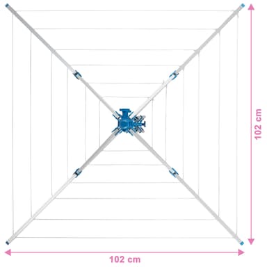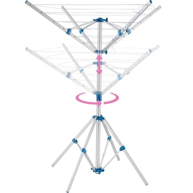 Dette mobile tørrestativ fra tectake tørrer dit vasketøj let og med et lille pladsbehov. Vasketøjsstativet er klar til brug i en håndevending. De fire fødder sørger for, at stativet står godt fast. Tørrestativet er meget velegnet til transport på grund af sit lille pladsbehov i sammenklappet tilstand. Efter brug kan stativet, som er af aluminium, klappes sammen og skilles ad i to dele. For at det er nemt at hænge tøj op og tage det ned, kan de fire stænger indstilles trinløst på den ønskede højde. Om det er til camping eller terrassen derhjemme: Det praktiske roterende tørrestativ fra tectake vil være en stor hjælp.