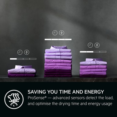 PreciseDry's avancerede fugtsensorer sparer tid og reducerer energiforbruget ved automatisk at justere programmet til tøjmængden. Giver den rette tøjpleje, så hvert stykke tøj holder længere.