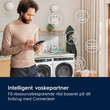 Nem navigation og tilpasning med DynamicDisplay. Få gode råd på skærmen og hurtig adgang til dine foretrukne programmer med tilpassede indstillinger, og tilslut Electrolux-appen til dit produkt for at fjernbetjene din tøjvask, mens du modtager energibesparende råd.