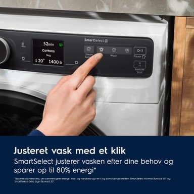 SmartSelect tilpasser nemt tøjvasken til dine behov og sparer op til 80% energi, 50% tid og 20% vand*