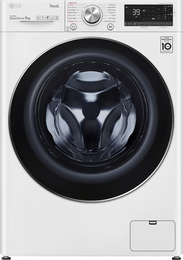 Denne LG vaskemaskine FV96VNS2QA sikrer dit tøj en grundig vask med pleje. Enheden har en kraftfuld Direct Drive motor, AutoDose-teknologi, Steam+ funktion og et hurtigt 39 minutters TurboWash program. Vaskemaskinen er wi-fi kompatibel, så du kan betjene enheden på afstand via LG SmartThinQ- appen.
