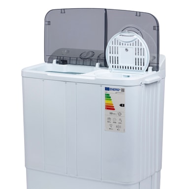 Kapacitet: 4 kg Strømforsyning: 230V Vasketimer Tørring Effekt: 200W Farve hvid Materiale: ABS, PP Vægt: 11,8 kg Længde: 36 cm Højde: 71 cm Bredde: 63,5 cm