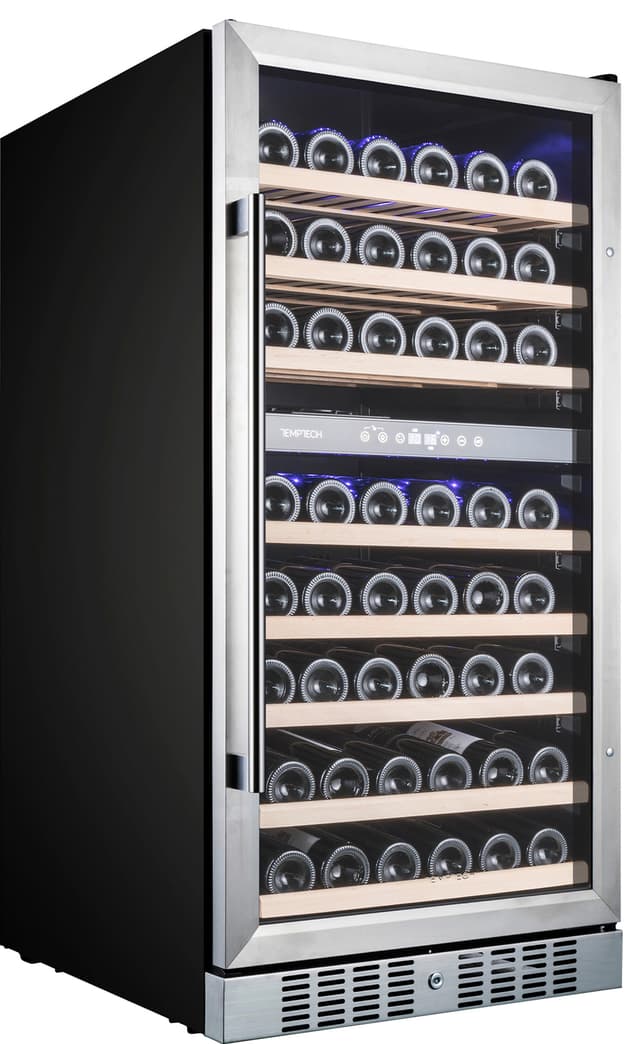 Temptech Premium vinkøleskabet WP180DCS er perfekt til enhver vinelsker. Den elegante enhed har plads til 94 flasker, og takket være de 2 temperaturzoner kan du altid servere 2 typer vine ved de rigtige temperaturer.