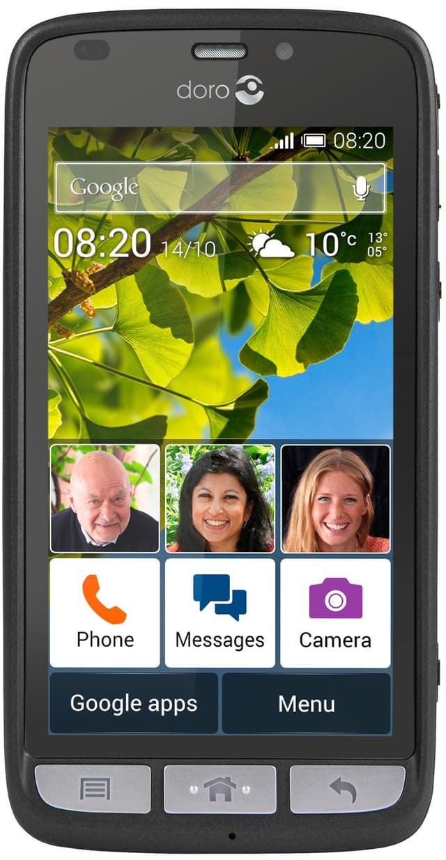 Med den seniorvenlige Doro Liberto 820 smartphone finder du nemt dine favoritkontakter og øvrige features direkte på startskærmen. Du kan også nemt og hurtigt få hjælp fra den indbyggede guide.