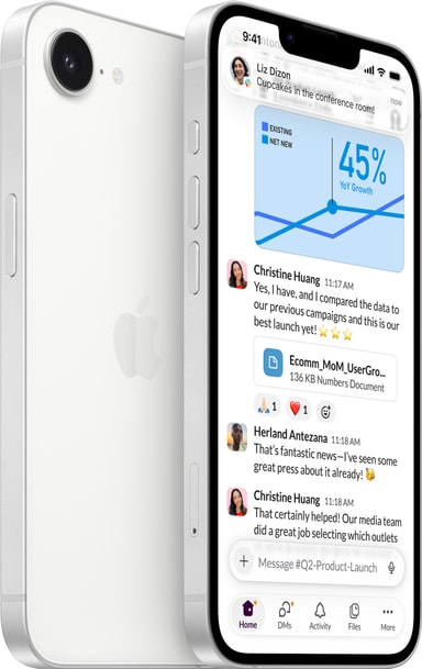 iPhone 17e har en smuk 6,1" Super Retina XDR-skærm,1 den hurtige og effektive A19-chip, batteritid til hele dagen2 og lagerplads på 256 GB og opefter.