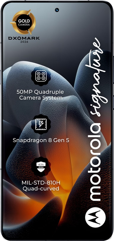 Motorola Signature smartphonen med holdbart ultratynd design bringer ultimativ ydeevne og fremragende billeder takket være Sony LYTIA™ sensorer, Snapdragon 8 Gen 5 processor, 5200mAh batteri og kompatibilitet med trådløs opladning.Læs mere om produktet