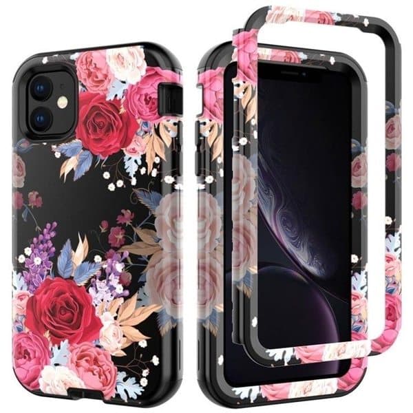 Flot bagsidecover med blomsterdesign med et mellemlag som beskytter hele bagsiden og hjørnerne på telefonen.