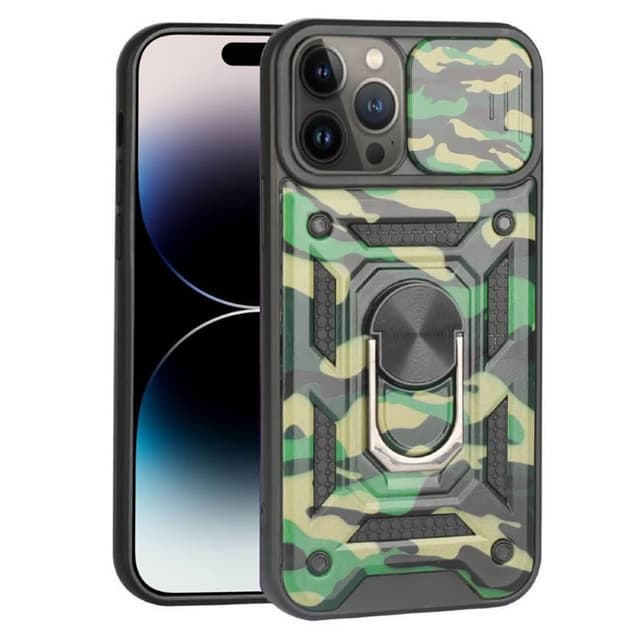 Specifikationer Produkt: Camo cover Farve: Grøn. Model: Apple iPhone 14 Pro Model nr: A2890 Materiale indeni: TPU ( Thermo Plastic Urethane ) Materiale udenfor: PC (polycarbonat)
