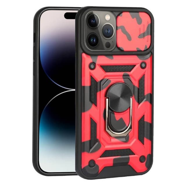 Specifikationer Produkt: Camo cover Farve: Rød Model: Apple iPhone 14 Pro Max Model nr: A2894 Materiale indeni: TPU ( Thermo Plastic Urethane ) Materiale udenfor: PC (polycarbonat)