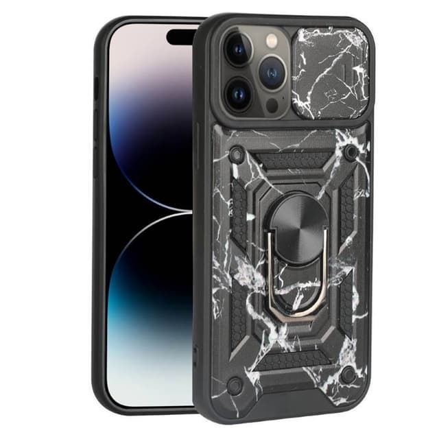 Specifikationer Produkt: Camo cover Farve: Sort Model: Apple iPhone 14 Pro Max Model nr: A2894 Materiale indeni: TPU ( Thermo Plastic Urethane ) Materiale udenfor: PC (polycarbonat)