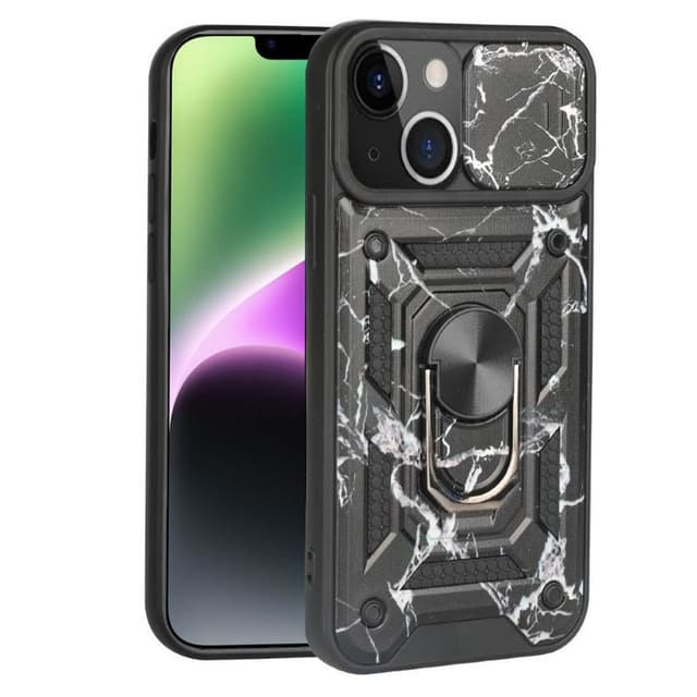Specifikationer Produkt: Camo cover Farve: Sort Model: Apple iPhone 14 Model nr: A2882 Materiale indeni: TPU ( Thermo Plastic Urethane ) Materiale udenfor: PC (polycarbonat)