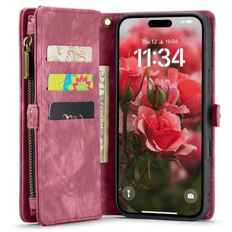Elegant og praktisk mobilwallet med plads til kreditkort, sedler og mønter. Mobiltelefonen monteres i et magnetisk aftageligt mobilcover, hvilket gør det nemt at tage telefonen ud af etuiet, perfekt til hurtige opkald eller når man ønsker at adskille telefonen og mobilpungen. Skjult magnetlukning holder etuiet lukket. Adgang til telefonens funktioner.