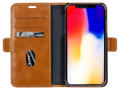 dbramante1928 Copenhagen iPhone XR coveret er lavet af højkvalitets kernelæder, som beskytter din telefon fra ridser og faldskader. Det har også tre kortholdere og kan bruges som stander, så du kan se videoer og film.Læs mere om produktet