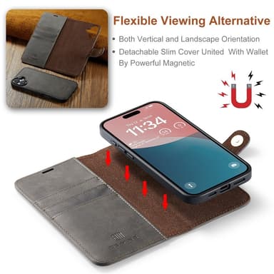 Dette 2-i-1 magnetiske etui tilbyder både et elegant læderetui og en robust PC-bagside. Brug dem sammen eller hver for sig, afhængigt af dine behov. Det praktiske læderetui har plads til tre kort og sedler. Den sikre lukning beskytter dine værdigenstande, mens den indbyggede ståfunktion gør det nemt at se videoer. Du kan endda tale med etuiet lukket takket være den smarte frontudskæring.